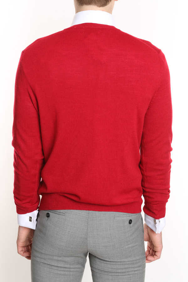A classy V-neck sweater crafted from smooth refined Merino wool. Essential for layering when changing climates.